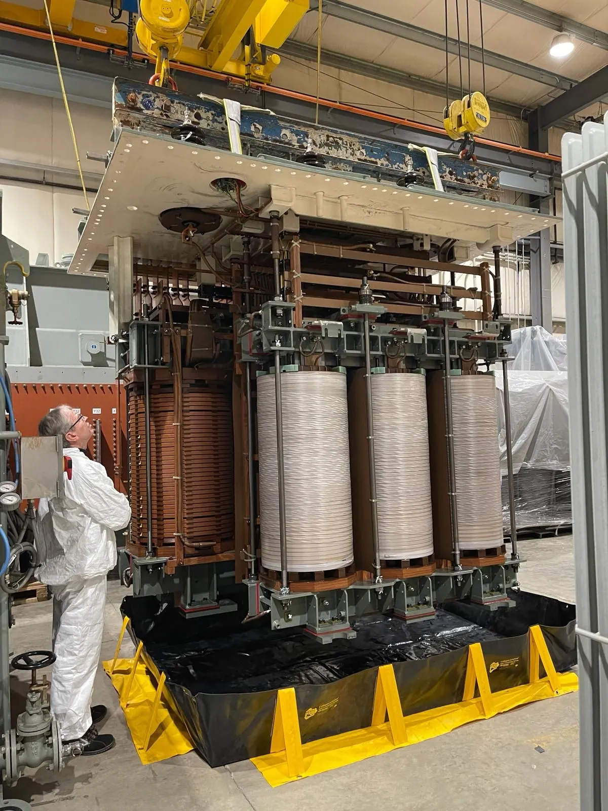 Complete refurbishment services, including disassembly of active components, winding replacement, drying and treatment of active parts, rigorous testing before re-energization, and on-site assistance during recommissioning.